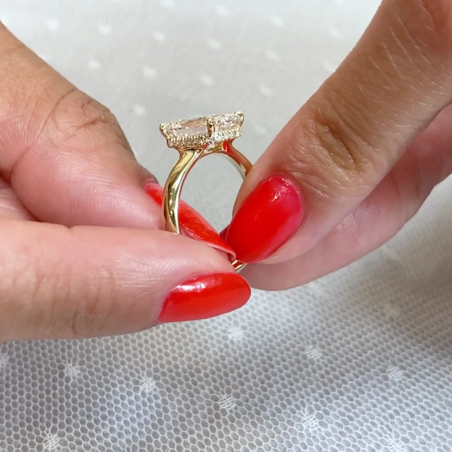 3.20tcw Emerald Lab Diamond Engagement Ring | Hidden Halo | Tapered Band | IGI Certified
